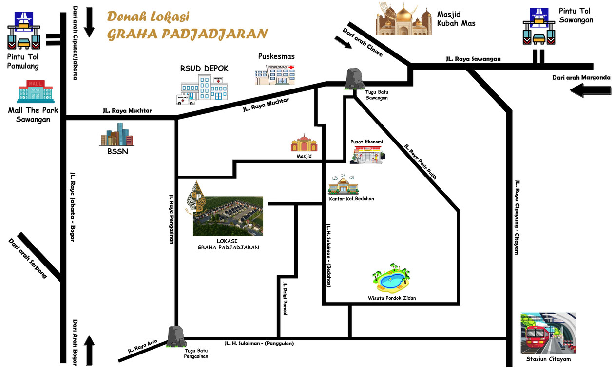 Graha Padjadjajaran rumah 500 juta-an di Sawangan Kota Depok dengan konsep minimalis memiliki 2 kamar tidur dan 1 kamar mandi untuk varian 1 lantai.